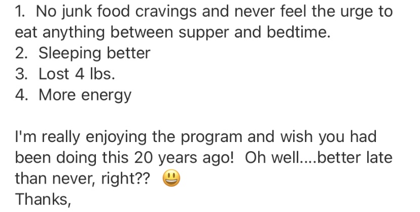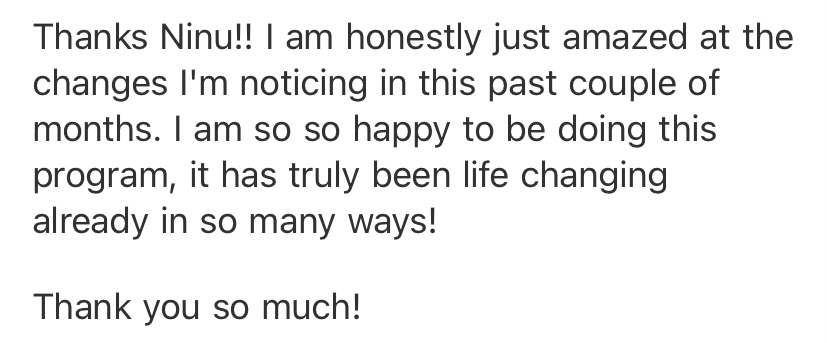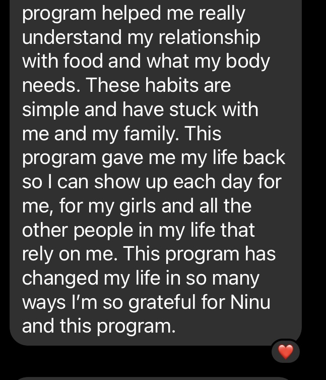Success my clients have seen working with me include: weight loss up to 77 lbs, symptom-free periods, predictable digestion, eating fav foods without symptoms, increased energy, less anxiety and no more cravings!